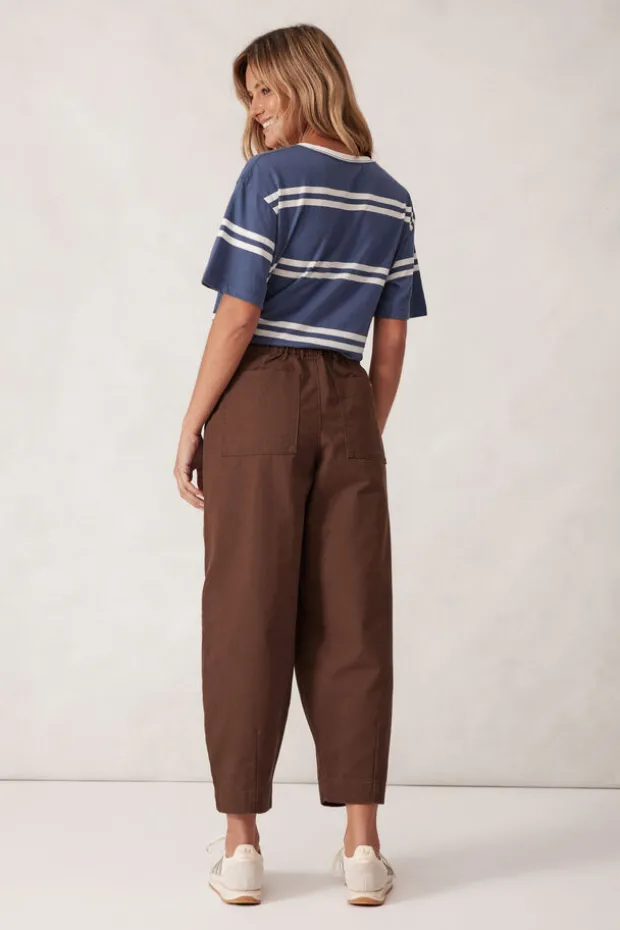 Discover comfort with our organic cotton Weekender Pant. Featuring a relaxed barrel silhouette, cropped length, and elastic back waist.