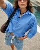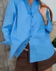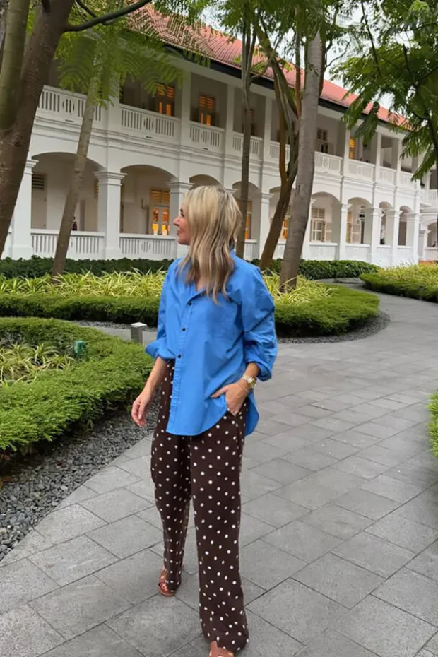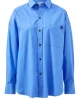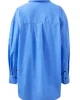 Discover comfort with this blue oversized organic poplin cotton shirt. Perfect for everyday wear, as seen on Jacqui Felgate.