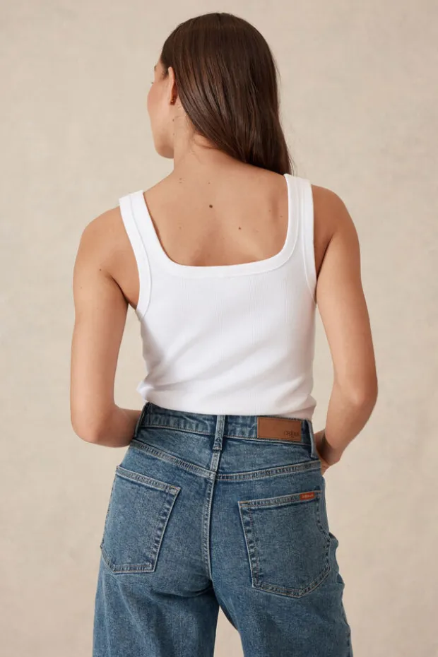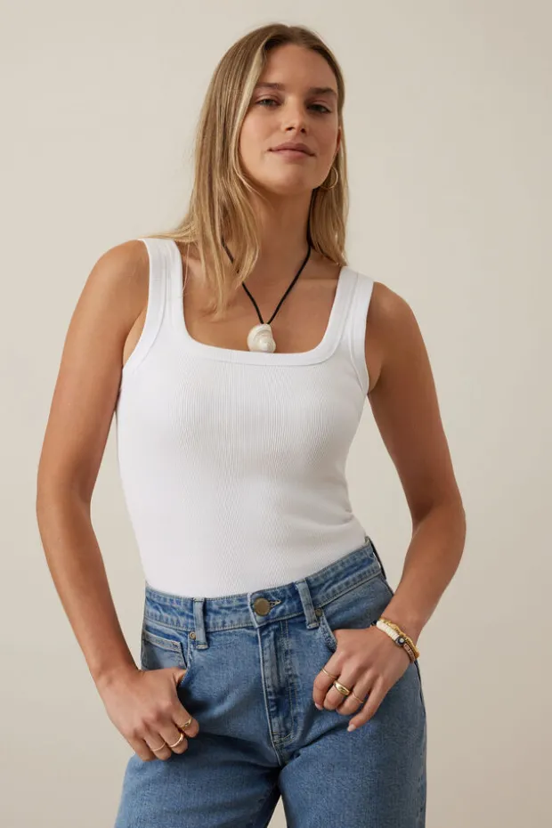 Thoughtful tank, singlet & sleeveless designs, Ceres Life passionately produce conscious fashion. Shop Organic Contour Rib Square Neck Tank in White.