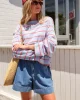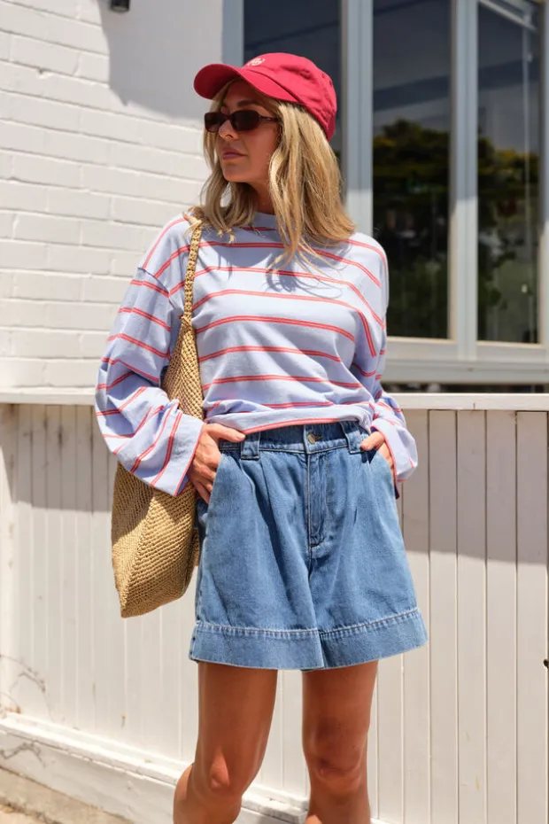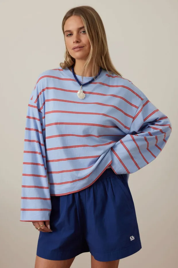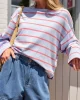 China blue/vintage red double stripe, Milk/brunette brown stripe