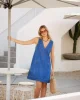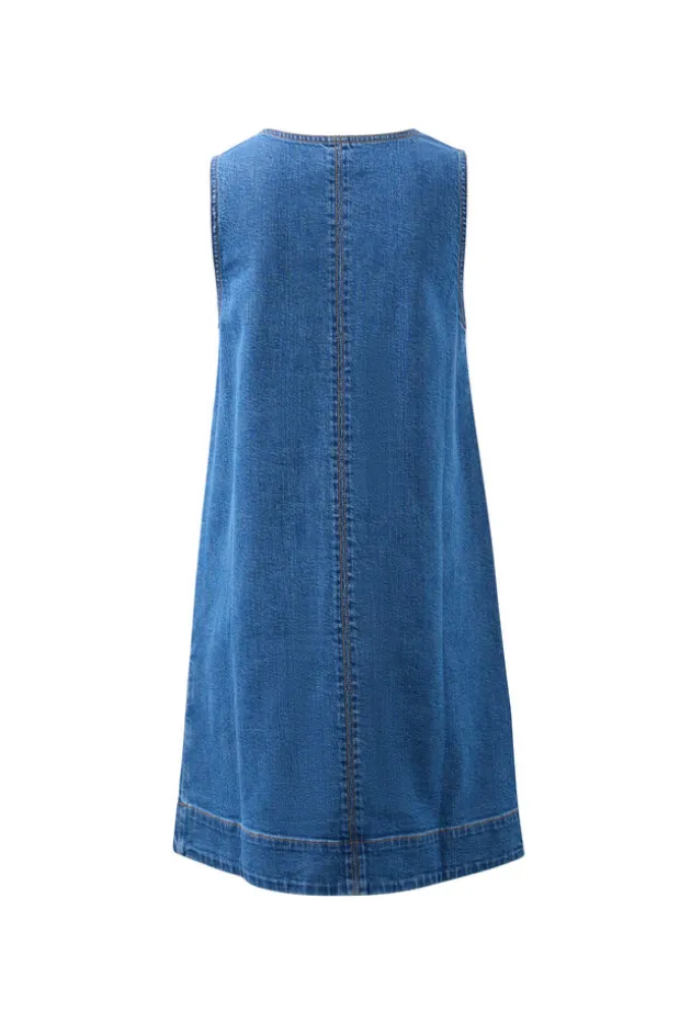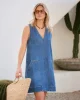 Relaxed denim shift dress with a mini length and roomy patch pockets. Perfect for effortless summer style.