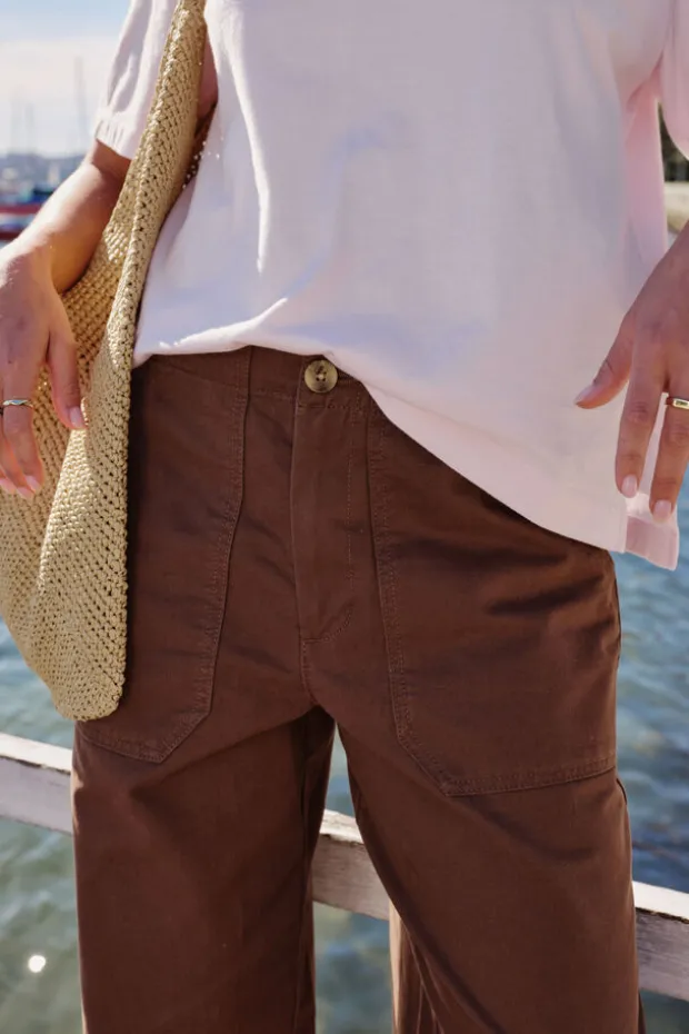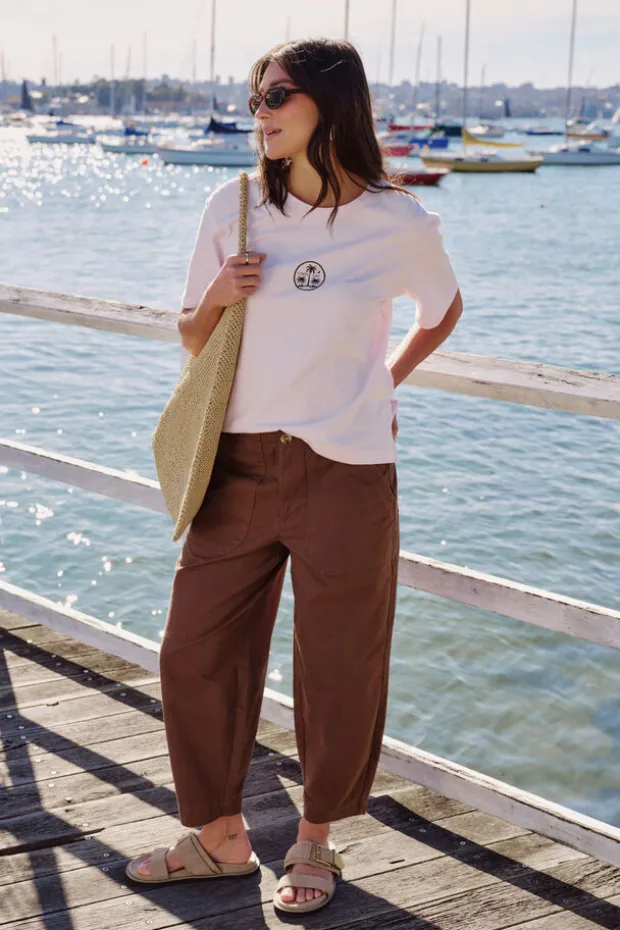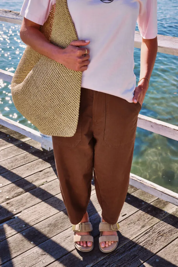 Discover comfort with our organic cotton Weekender Pant. Featuring a relaxed barrel silhouette, cropped length, and elastic back waist.