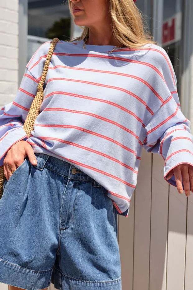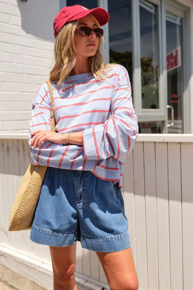 China blue/vintage red double stripe, Milk/brunette brown stripe