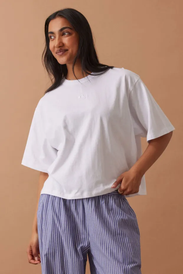 Meet your new wardrobe essential, white t-shirt, made from 100% organic cotton with a premium weight jersey. Relaxed, boxy oversized fit, as seen on Jacqui Felgate.